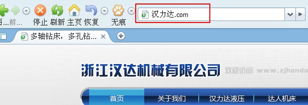 為方便客戶查看我司網站,我司申請了中文域名"達人機床.com“"漢力達.com",您只要在地址欄中輸入 "達人機床.com" 或者"漢力達.com”即可訪問到浙江漢達機械有限公司的官方網站。