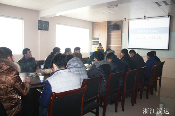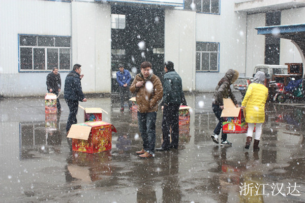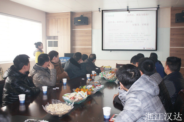 2014.02.09,是浙江漢達正式開工的好日子,恰遇新年的第一場雪。都說瑞雪兆豐年,公司的各位主管、員工及前來參加年度經銷會議的經銷商們,冒著大雪,紛紛地加入到點火儀式當中,希望借著這瑞雪和煙花,沾一沾喜氣和好運,共同期盼著2014年,在浙江漢達領導層的帶領下,打開局面,事業更上一層樓。在儀式結束后,由營銷中心負責在四樓會議室,召開了年度經營商會議。公司總經理出席了會議,并作講話。營銷應副總為經營銷商解讀了新年里的銷售獎勵政策,并對上一年度的銷售精英進行了獎勵。技術副總應偉達則就公司最新開發和主推的幾款產品,對其性能、技術參數等作了詳細的介紹。