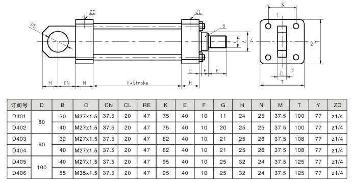 后耳環安裝-低壓拉桿液壓缸尺寸圖及參數